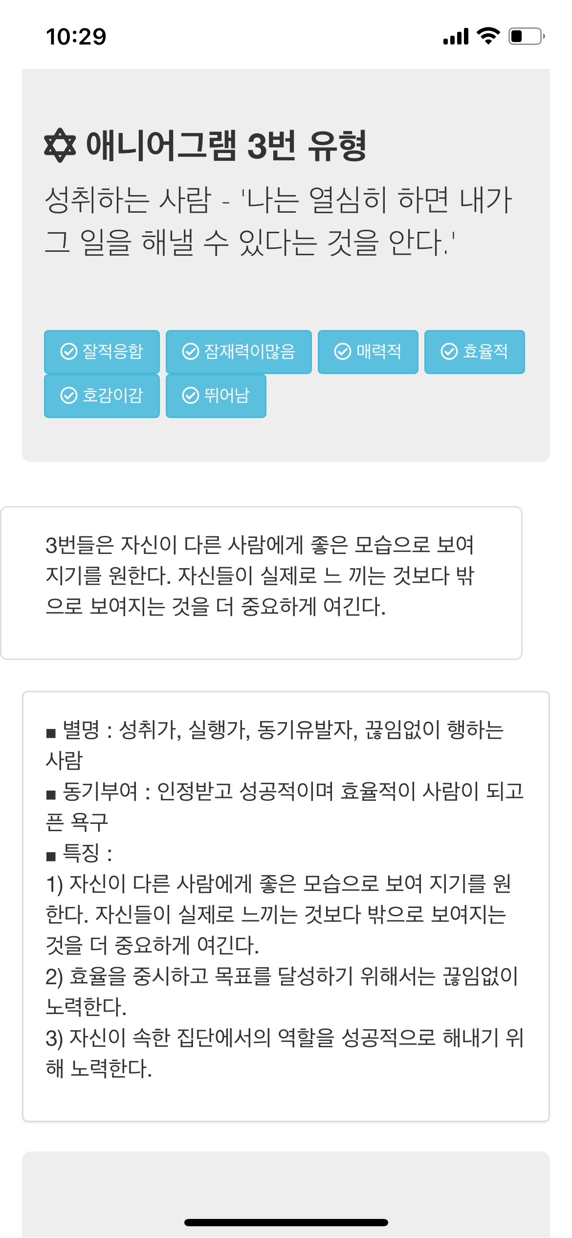 - 애니어그램 테스트 : http://aiselftest.com/enneagram/selftest.html