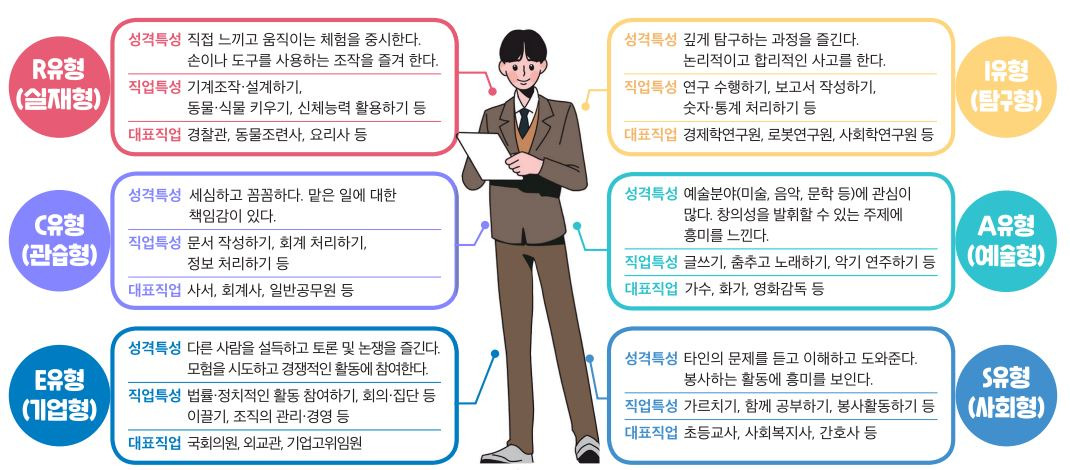 - 예술형(Artistic): 창의성과 상상력이 필요한 업무