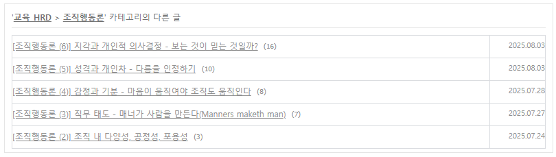 [티스토리 스킨 수정] - 본문 하단 [ 카테고리의 다른 글] 박스 테두리 수정 (HTML/CSS)Tistory 사용기 2025. 8. 16. 09:45